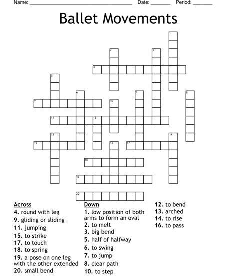 Ballet Crossword Puzzle Crossword, Word bank, Ballet terms