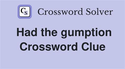 Gumption Crossword Clue. Click the answer to find similar crossword clues. Enter the length or pattern for better results.