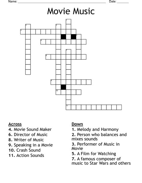 Music For A Movie Crossword. Share tweet look for more clues & answers sponsored links Web the crossword solver found answers to music for a movie crossword clue.