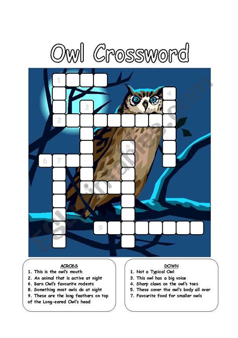 English worksheets Owl Crossword
